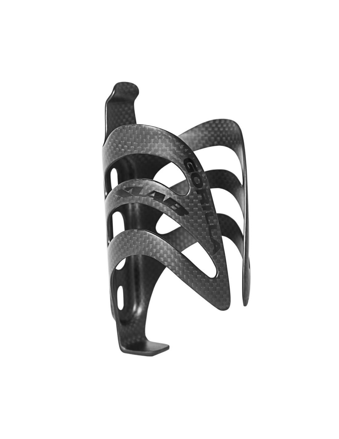 The GORILLA Cage helps prevent bottles ejecting from cages on bumpy roads, and saddle-mounted water bottle carriers. The cage has over 2X the gripping force of conventional carbon cages due to the 6 high shouldered carbon gripping fingers, tall retention tab at the top and thicker carbon material. The GORILLA cage will fit on any standard cage mounts.